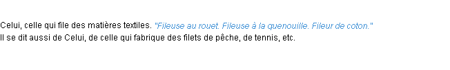 Ancienne définition de « fileur » de source académique (Académie Française, parution de 1798).Merci à Clémence et Baptiste pour la numérisation du mot fileur.