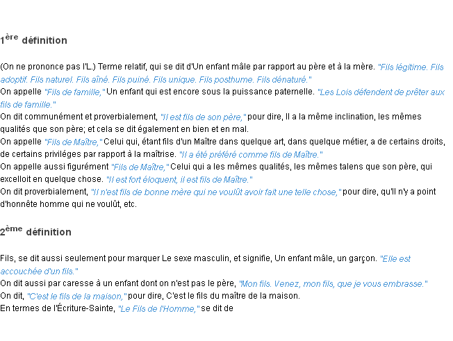 Définition de l’Académie Française (édition de 1932) pour le mot « fils ».