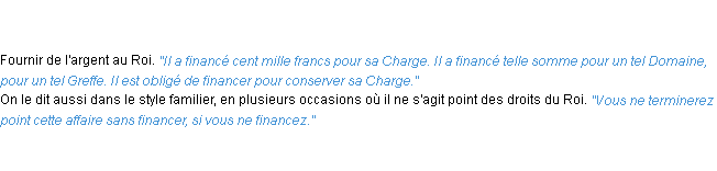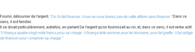 Ancienne signification parue en 1798 dans dictionnaire de l’Académie Française.Merci à Franck et Françoise pour la numérisation du mot financer.