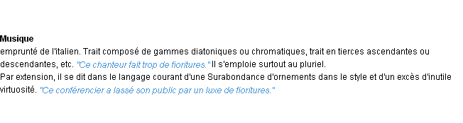 Signification du terme « fioriture », parution de 1932, dictionnaire académique Français.