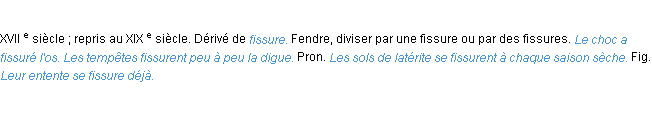 Signification du terme « fissurer », parution de 1876 (dictionnaire le Littré).- Autres Recherches