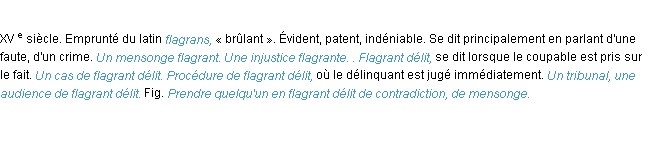 Signification éditée en 1932 pour le terme « flagrant » par l’Académie Française.