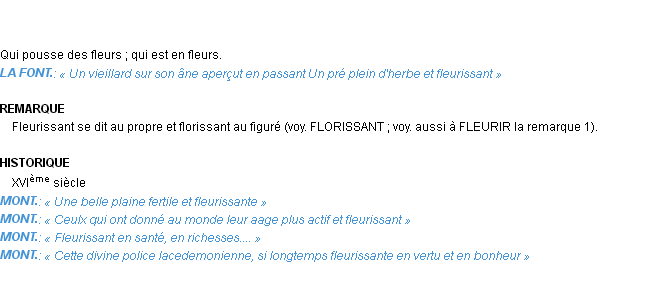 Définition du mot « fleurissant » par l’Académie Française (édition de 1932).