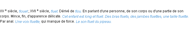 Ancienne définition académique pour le terme « fluet » (parue en 1835).