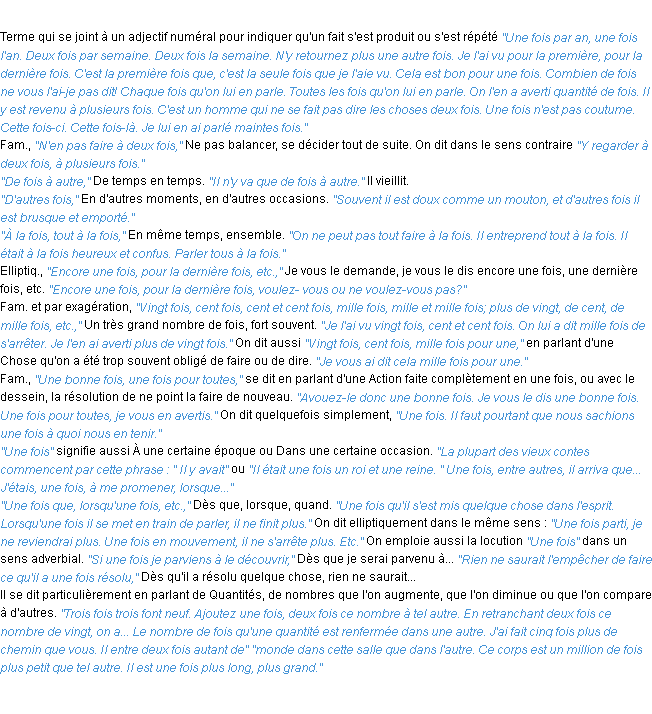 Signification éditée en 1932 pour le terme « fois » par l’Académie Française.