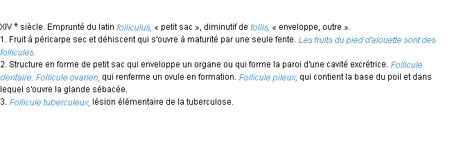 Signification du terme « follicule », parution de 1932, dictionnaire académique Français.