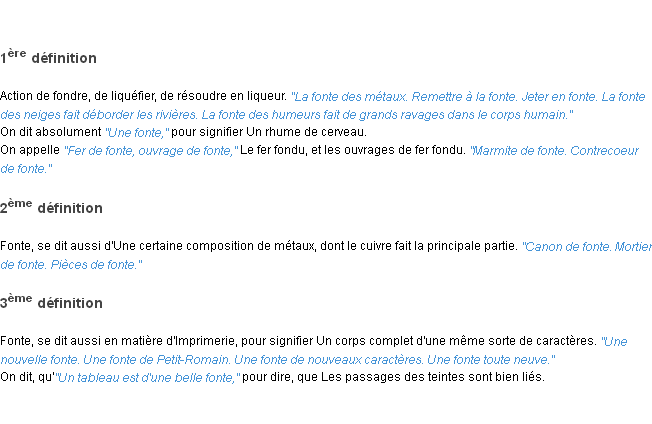 Ancienne définition du mot « fonte » par l’Académie Française (édition de 1835).