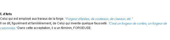 Signification éditée en 1932 pour le terme « forgeur » par l’Académie Française.