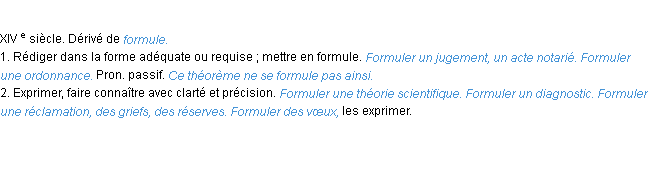 Signification parue en 2009 (source la-definition.fr).Merci à Colombe et Céline pour la numérisation du mot formuler.