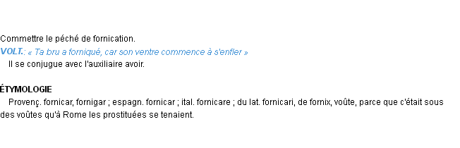 Définition développée dans dictionnaire d’Emile Littré (ancienne édition de 1876).Merci à Josée et Théodore pour la numérisation du mot forniquer.