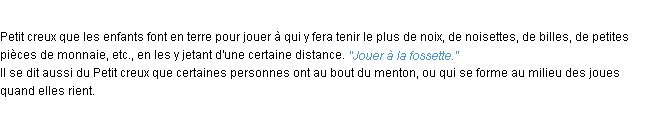 Définition académique pour le terme « fossette » (parue en 1932).