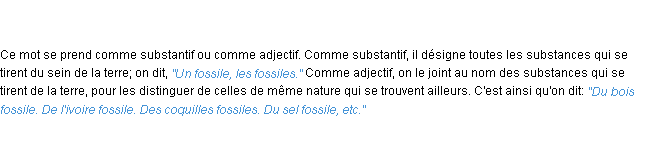 Signification éditée en 1986 pour le terme « fossile » par l’Académie Française.