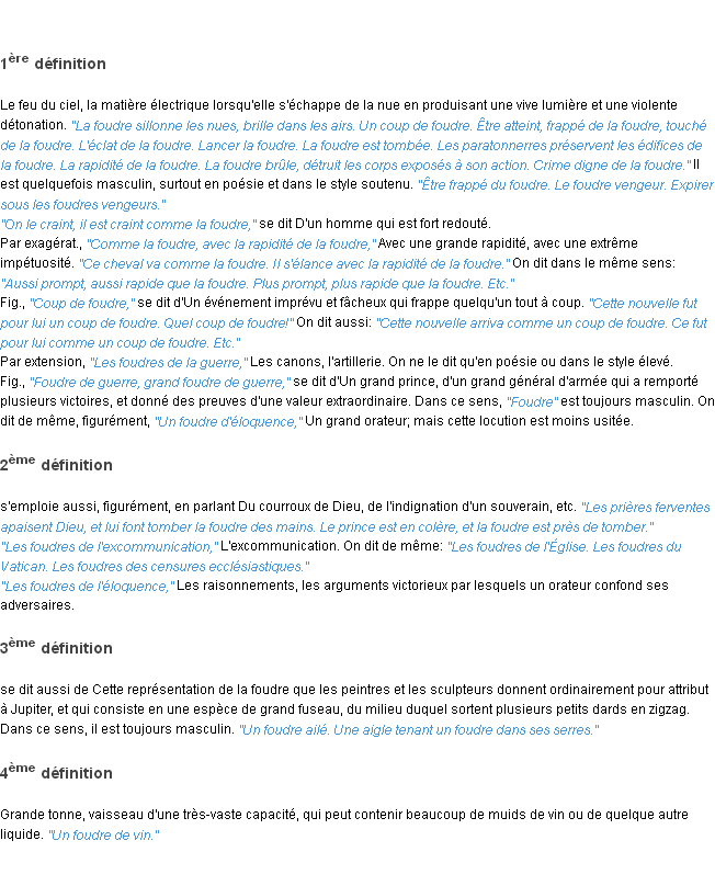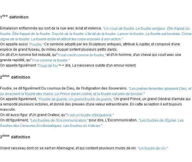 Signification du terme « foudre », parution de 1932, dictionnaire académique Français.