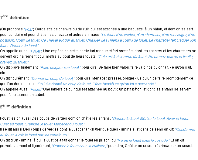 Définition du mot « fouet » par l’Académie Française (édition de 1932).