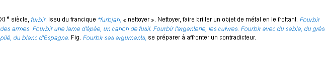 Signification du terme « fourbir », parution de 1986, dictionnaire académique Français.