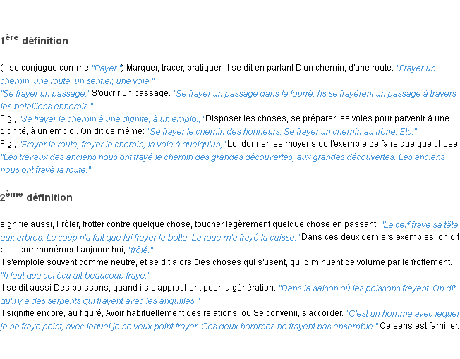 Ancienne signification éditée en 1835 pour le terme « frayer » par l’Académie Française.
