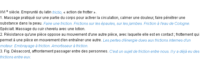 Ancienne définition académique pour le terme « friction » (parue en 1835).