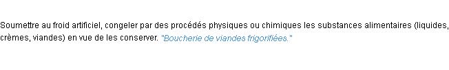 Définition du mot « frigorifier » par l’équipe de la-definition.fr (édition de 2011).Merci à éliane et Inès pour la numérisation du mot frigorifier.