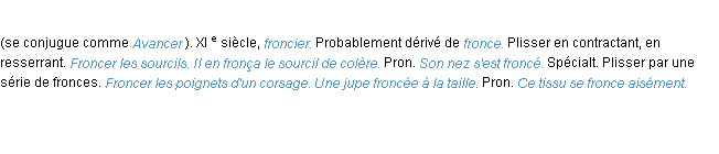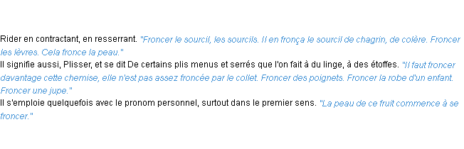 Ancienne signification développée en 1798 par l’académie Française (ACAD - 1798).Merci à Rémi et étienne pour la numérisation du mot froncer.
