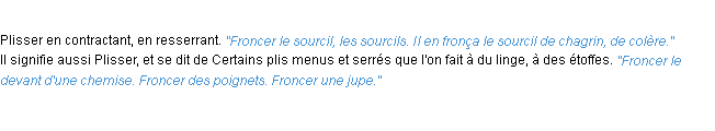 Signification éditée en 1932 pour le terme « froncer » par l’Académie Française.