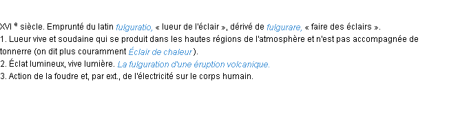 Ancienne définition de « fulguration » de source académique (Académie Française, parution de 1798).Merci à Bastien et Pascal pour la numérisation du mot fulguration.
