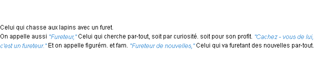 Ancienne signification parue en 1798 dans dictionnaire de l’Académie Française.Merci à Gwenaelle et Mathieu pour la numérisation du mot fureteur.