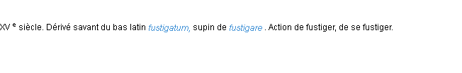 Définition développée dans dictionnaire d’Emile Littré (ancienne édition de 1876).Merci à Hercule et Marguerite pour la numérisation du mot fustigation.