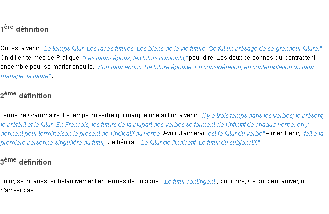 Signification éditée en 1932 pour le terme « futur » par l’Académie Française.