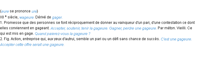 Définition du mot « gageure » par l’Académie Française (édition de 1932).