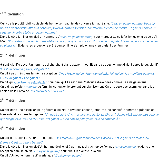Définition du mot « galant » par l’Académie Française (édition de 1986).