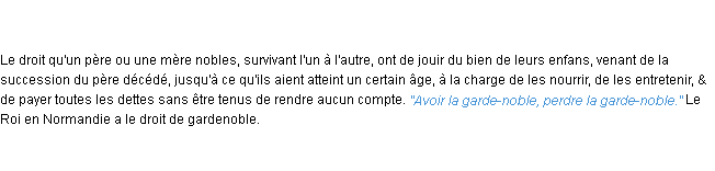 Ancienne signification éditée en 17962 pour le terme « garde-noble » par l’Académie Française.Merci à Théo et Joséphine pour la numérisation du mot garde-noble.