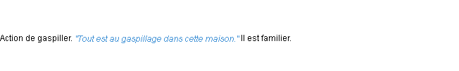 Définition issue du dictionnaire wiktionary pour le mot « gaspillage ».Merci à Félix et Gervais pour la numérisation du mot gaspillage.