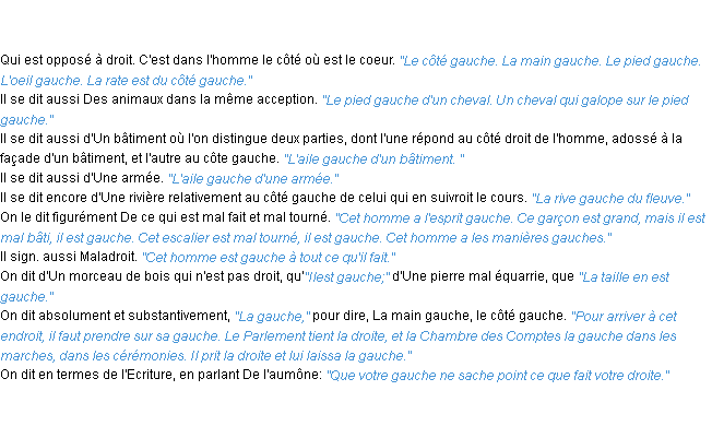 Ancienne signification éditée en 1835 pour le terme « gauche » par l’Académie Française.