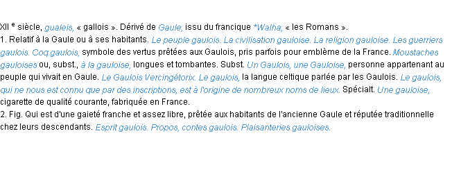 Signification éditée en 1932 pour le terme « gaulois » par l’Académie Française.