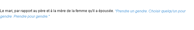 Signification parue en 2009 (source la-definition.fr).Merci à Clémence et Iréné pour la numérisation du mot gendre.
