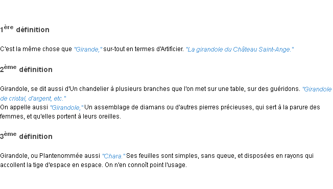 Ancienne définition de « girandole » de source académique (Académie Française, parution de 1798).