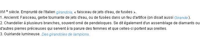 Définition de « girandole » de source académique (Académie Française, parution de 1932).