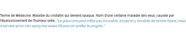 Définition académique pour le terme « glaucome » (parue en 1932).