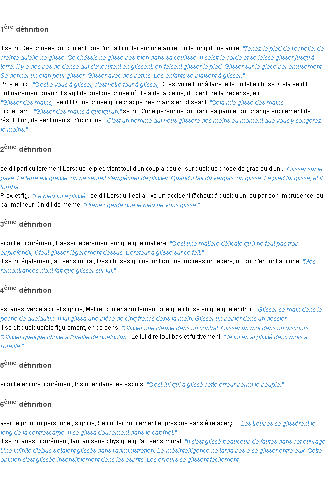 Définition du mot « glisser » par l’Académie Française (édition de 1986).