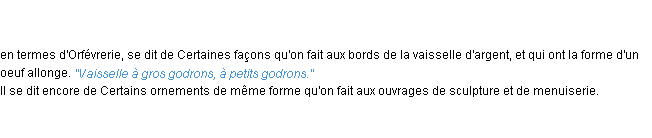 Définition de l’Académie Française (édition de 1932) pour le mot « godron ».
