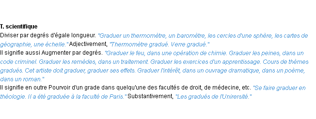 Ancienne définition « graduer » du dictionnaire académique Français, parution de l’année 1798.Merci à Laurent et Germaine pour la numérisation du mot graduer.