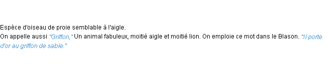 Ancienne définition du mot « griffon » par l’Académie Française (édition de 1798).Merci à Désiré et Hugues pour la numérisation du mot griffon.