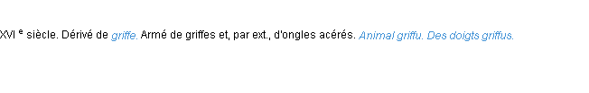 Définition de l’Académie Française (édition de 1986) pour le mot « griffu ».