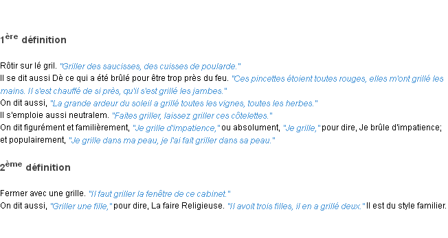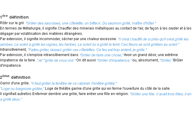 Ancienne définition du mot « griller » par l’Académie Française (édition de 1835).