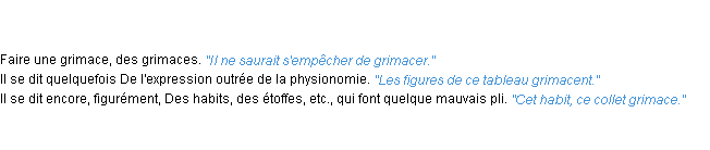 Ancienne définition de « grimacer » de source académique (Académie Française, parution de 1835).