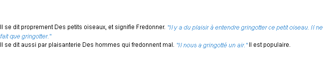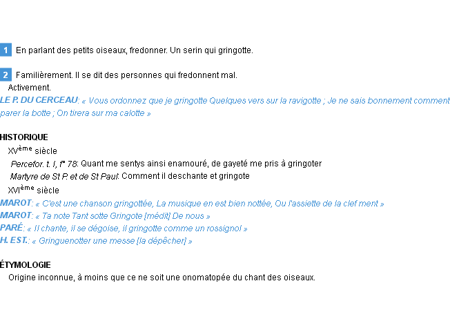 Définition de « gringotter » issue du Littré (Auteur Emile Littré, édité en 1876).
