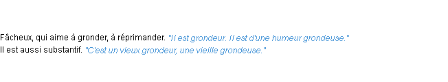 Signification du terme « grondeur », parution de 1986, dictionnaire académique Français.