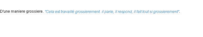 Ancienne signification développée en 1694 par l’académie Française (ACAD - 1694).Merci à Gilberte et Béatrice pour la numérisation du mot grossierement.