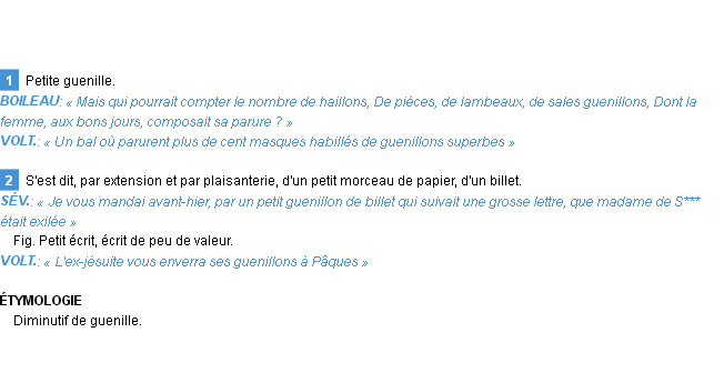 Définition d’Emile Littré (édition de 1876) pour le mot « guenillon ».