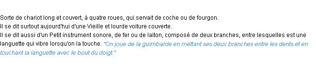 Ancienne signification issue du dico de l’Académie Française, parue en 1798.Merci à Manon et Arianne pour la numérisation du mot guimbarde.